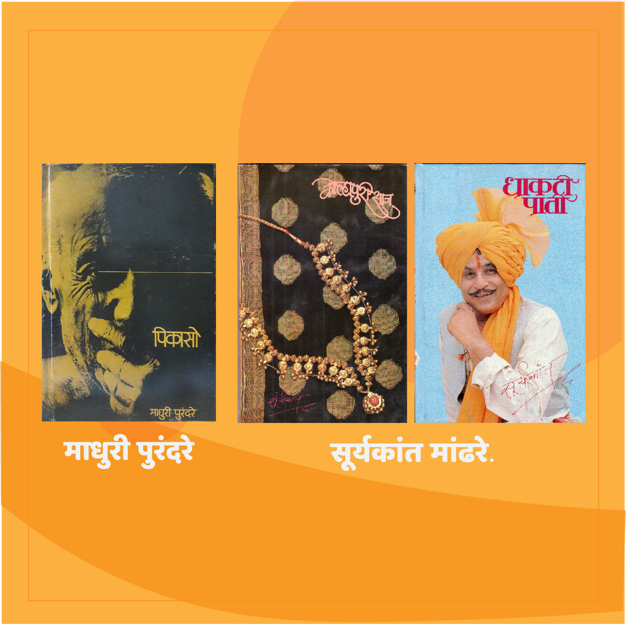 या संचामध्ये पिकासो, कोल्हापुरी साज आणि धाकटी पाती ही पुस्तके आहेत. पिकासो या पुस्तकामध्ये चित्रकार पाब्लो पिकासोचे चरित्र आहे. कोल्हापुरी साज या पुस्तकामध्ये सूर्यकांत मांढरे यांनी त्यांच्या आयुष्यात आलेल्या दिग्गज मंडळींच्या त्यांच्या जीवनातील वाट्याबद्दल माहिती दिली आहे. ज्यामध्ये त्यागमूर्ती बाबा गजबर, शिवभक्त बाबा भालजी पेंढारकर, अभिनेते मास्टर विठ्ठल, शिवशाहीर बाबासाहेब पुरंदरे,त्यांचे मित्र चारुदत्त सरपोतदार, विनोदवीर वसंतराव शिंदे, मर्दानी नायक बाळासाहेब यादव, चित्रकार बाबुराव पेंटर यांचा समावेश आहे. धाकटी पाती या पुस्तकामध्ये सूर्यकांत मांढरे यांचे चरित्र आहे.